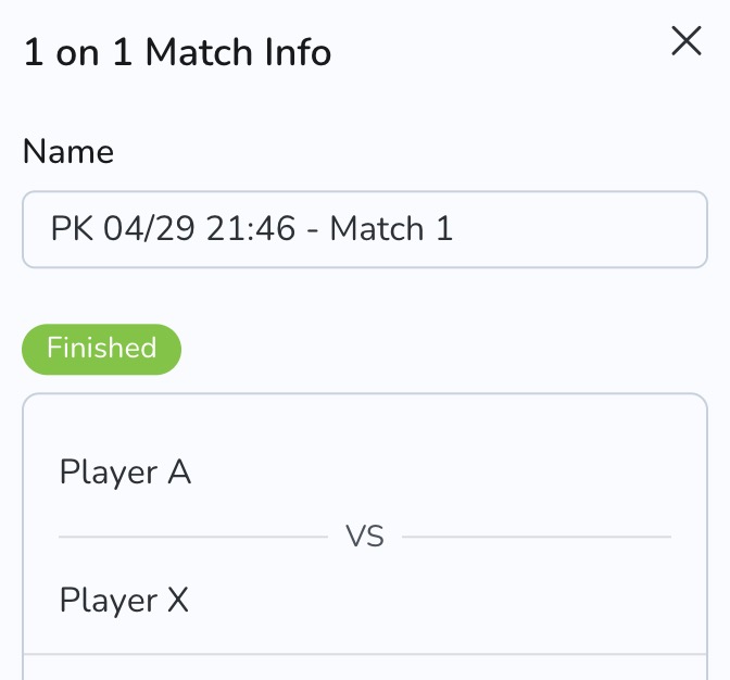 Each match comes with its own control screen, and standings are updated live as players record their results.